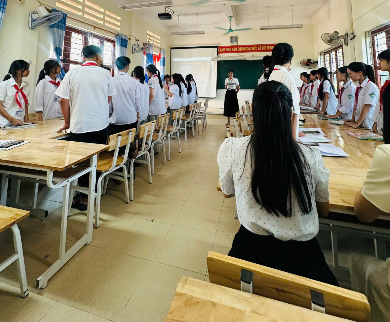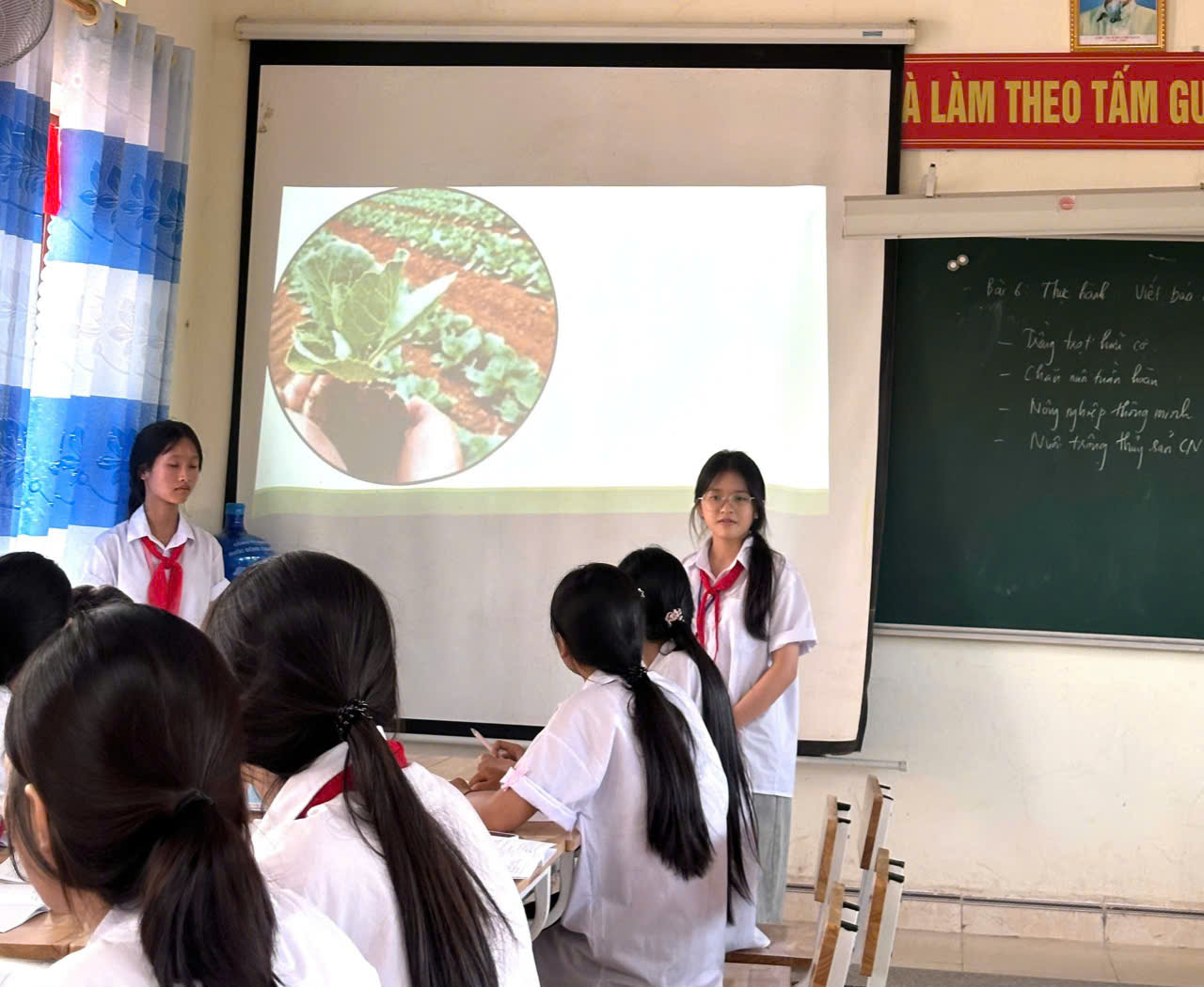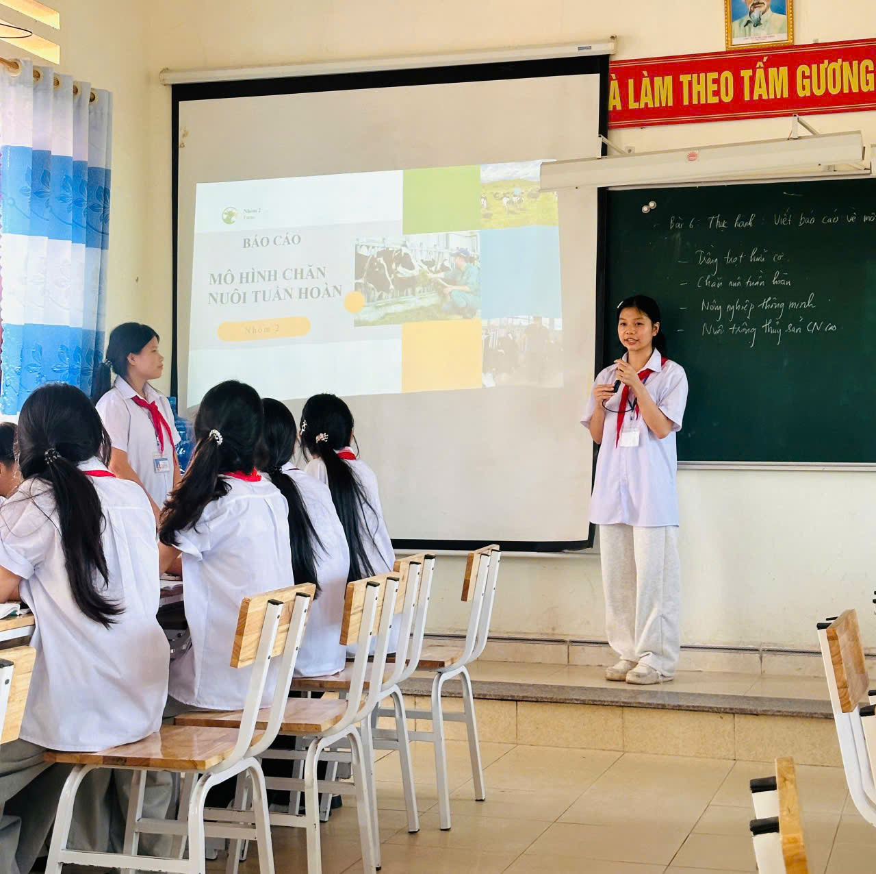 Hình ảnh 4. Trong tiết dạy minh hoạ giáo viên Tô Thị Thảo ứng dụng công cụ AI trong giờ học Địa lí tại lớp 9A.